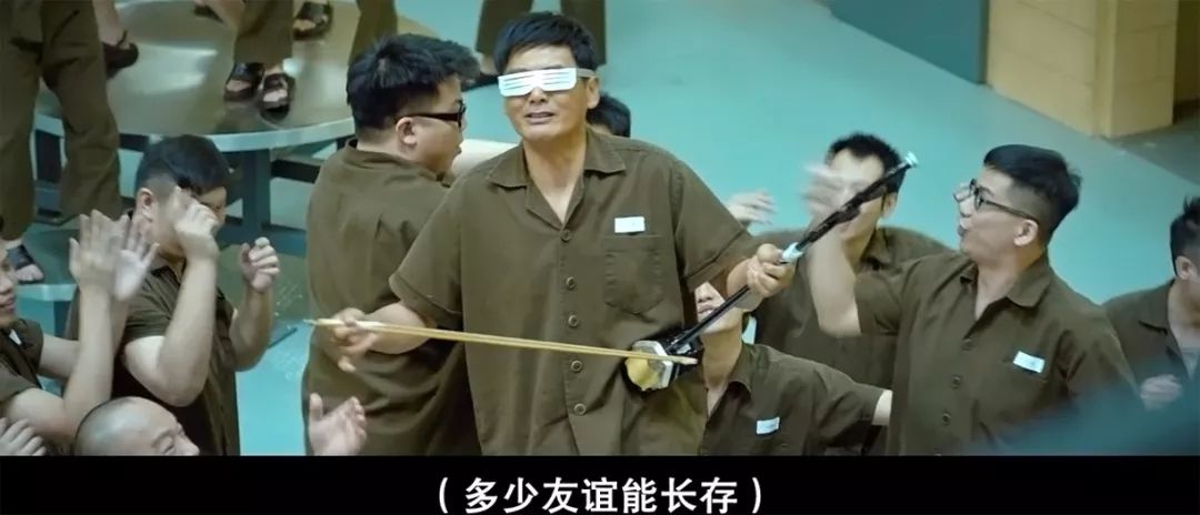 在电影中,赌神周润发换上《监狱风云》的造型,带着一帮港片老面孔,包括大b、肥妈玛利亚,拉起胡琴,再现了那首经典的《友谊之光》。