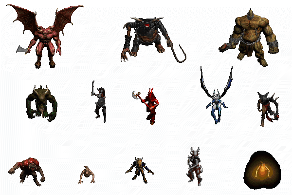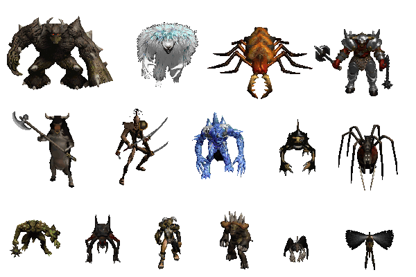 圣甲虫恶魔 、寒冰惊怖者、 巨大蚊子 、巨大蜘蛛 、巨锤死神 、堕落王、利爪腹蛇 、刺木魔 、剑齿猫 、地狱奶牛,这些全都是动物类的!