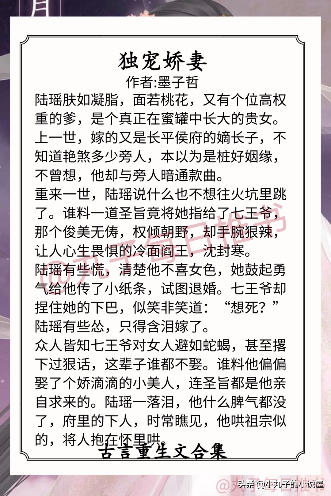 4.《独宠娇妻》 作者:墨子哲(娇气包小美人vs霸道宠妻王爷,女主重生,先婚后爱,古言甜宠文)