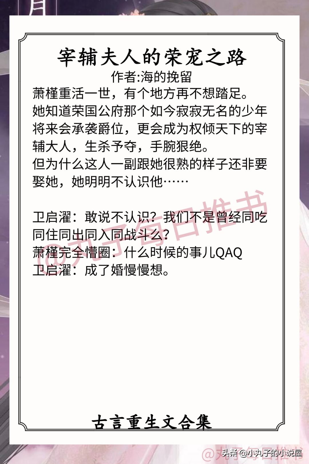 6.《宰辅夫人的荣宠之路》 作者:海的挽留(貌美小表妹vs抠门大表哥,双重生,古言甜宠文,小叔子抱得嫂子归)