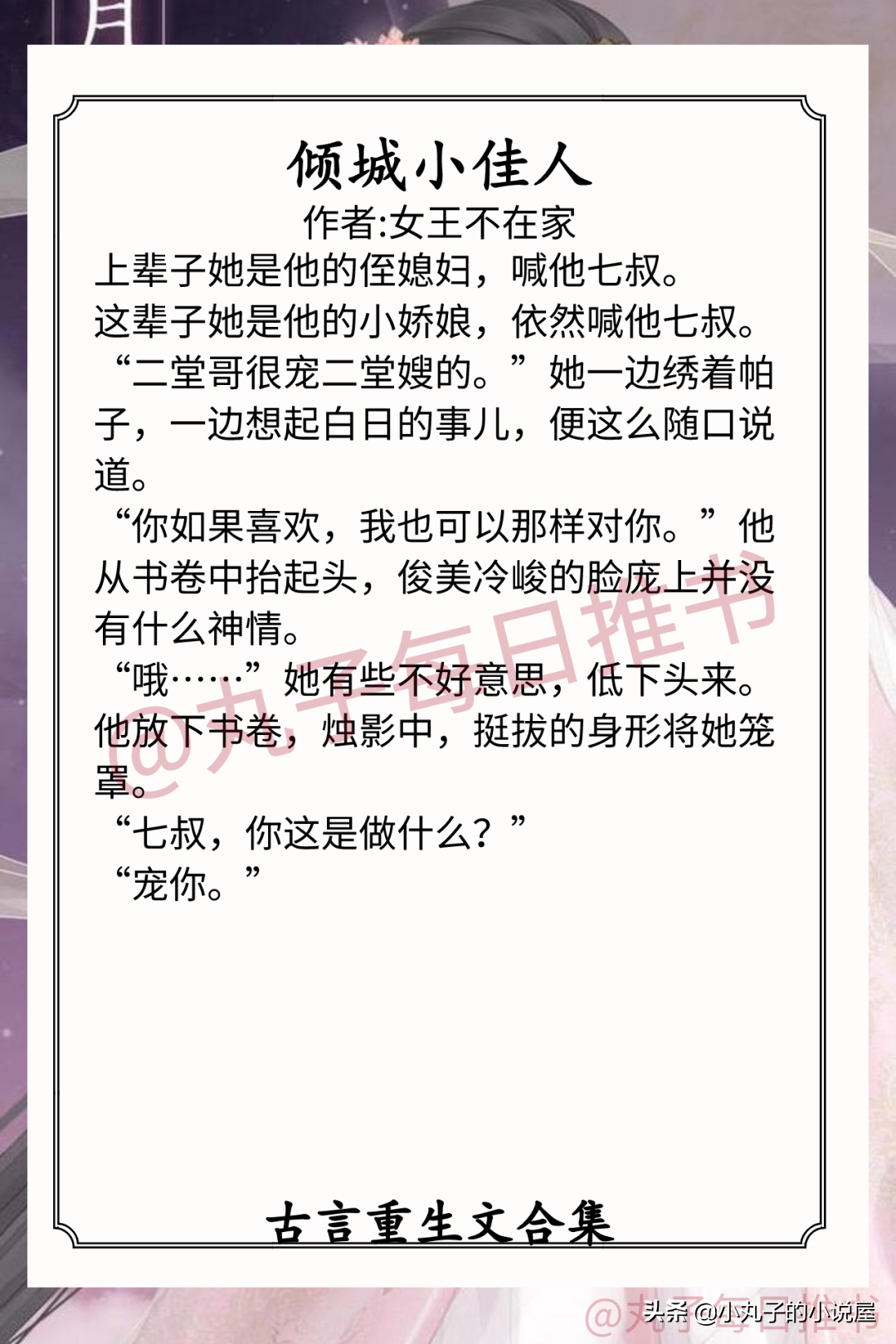 9.《倾城小佳人》 作者:女王不在家(身娇体软小萝莉vs苏破天际大叔,女主重生,古言大叔文)