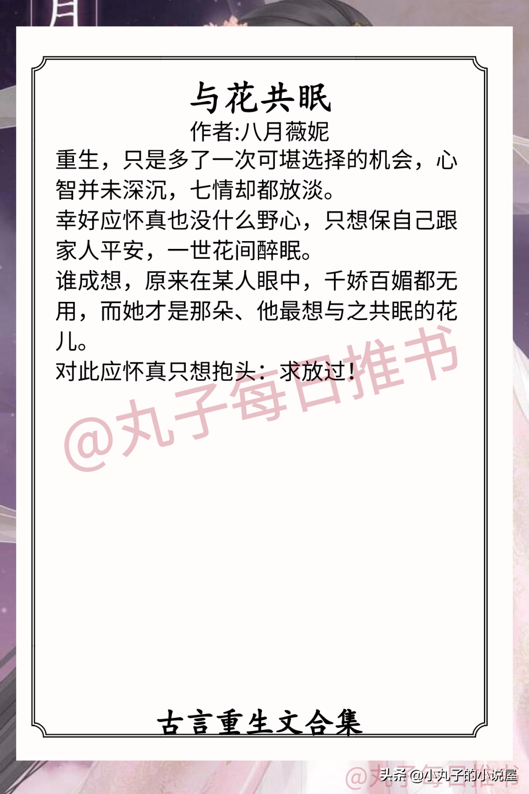 3.《与花共眠》 作者:八月薇妮(娇蛮柔弱美人vs光风霁月男主,女主重生,半养成,两世情缘,古言大叔文)