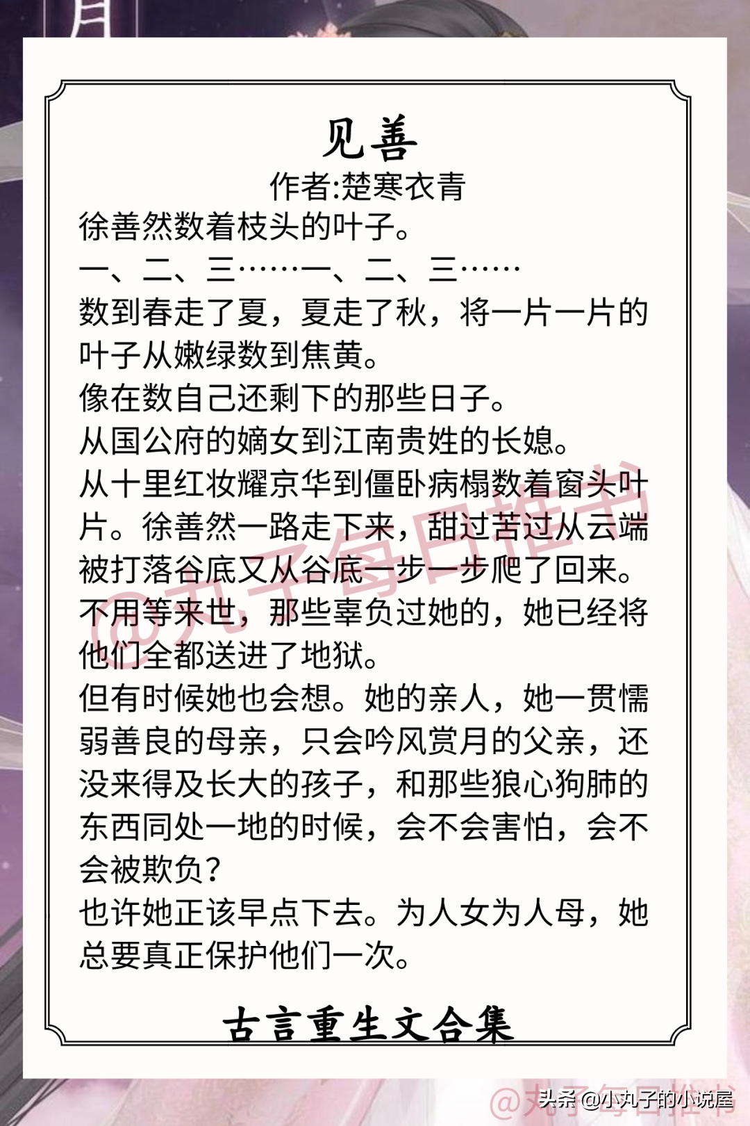 5.《见善》 作者:楚寒衣青(聪慧狠辣女主vs忠犬隐忍男主,女主重生,男主穿越,复仇虐渣,宅斗、权谋,大爽文)