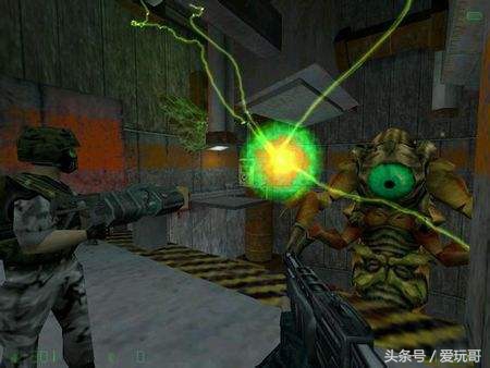 1998年,《半条命》横空出世!它是valve公司成立后的第一个游戏——这是以《雷神之锤Ⅱ》修改的引擎制作的第一人称动作游戏。故事情节主要是黑山实验室的科学家gordon freeman(戈登·弗里曼)博士在某次实验时,引发了实验爆炸并打开了外太空与地球的通道,致使大量外星生物占据了实验室。政府为了掩人耳目,派出特种部队一并消灭实验室里的生还人员和外星生物,最后弗里曼却发现这一切只不过是政府的实验,而他们全都成了这实验的牺牲品……这是爱玩哥最早接触的射击类游戏之一(重返德军、三角洲部队等)刚升初中的我,英文一窍不通,硬生生的被这游戏表现出的奇异恐怖世界所吸引,历经千辛万难(谜题非常多),击败最终的boss通了游戏!里面的各种敌人设计也是非常经典,有借鉴异形系列的手爪怪,有倒挂在天花板上偷袭你的藤壶怪,还有被各种生物感染变异的人类。此游戏还有个竞技模式,玩家在一张地图里相互杀戮,能用的武器五花八门,有遥控炸弹、绞肉电枪、火箭筒、各种机枪、冲锋枪,甚至还有外星虫子来做武器,为后来的反恐精英模式开创了先河!