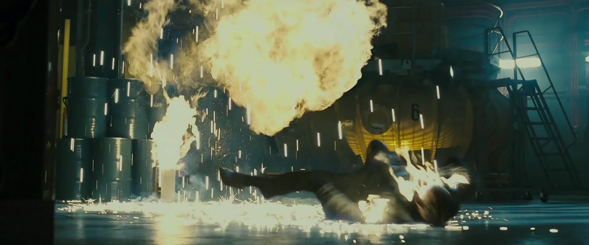 炸弹爆炸,虽然爆炸产生的火焰也将他烧的面目全非,但是因为一个神秘人递给他的时间机器,他看起来暂无生命之忧,而阻止他拆炸弹的神秘人在此时悄然离去……简单的几个镜头,导演已经给观众传达了无数悬念: