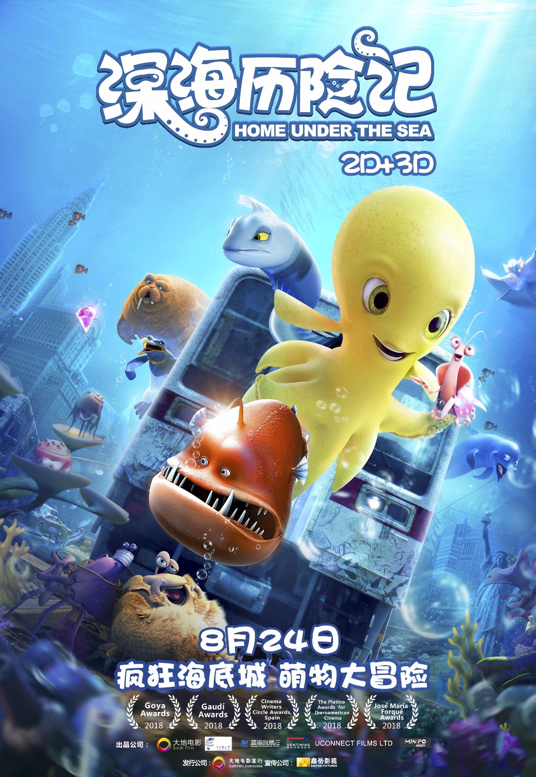 据悉,由中英顶级动画团队联合制作,大地时代文化传播(北京)有限公司、东方龙之梦(北京)数字科技有限公司出品,苏州创意云网络科技有限公司、海宁新鼎明影视文化投资管理有限公司、uconnect films ltd、迷你投联合出品,3d动画电影《深海历险记》将于8月24日全国上映。