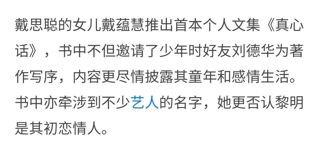 戴蕴慧就不一样了,直接否认了黎明和她恋爱这回事。