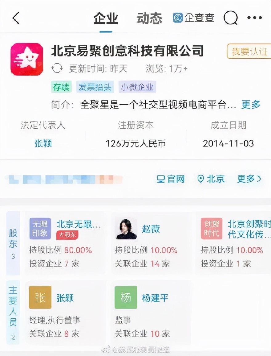 据企查查显示,北京易聚创意科技有限公司新增工商变更信息,由陈坤99%持股的东申童画(北京)文化传播有限公司退出该公司股东行列;北京易聚创意科技有限公司成立于2014年,赵薇持股10%,目前赵薇与陈坤已无商业关联。