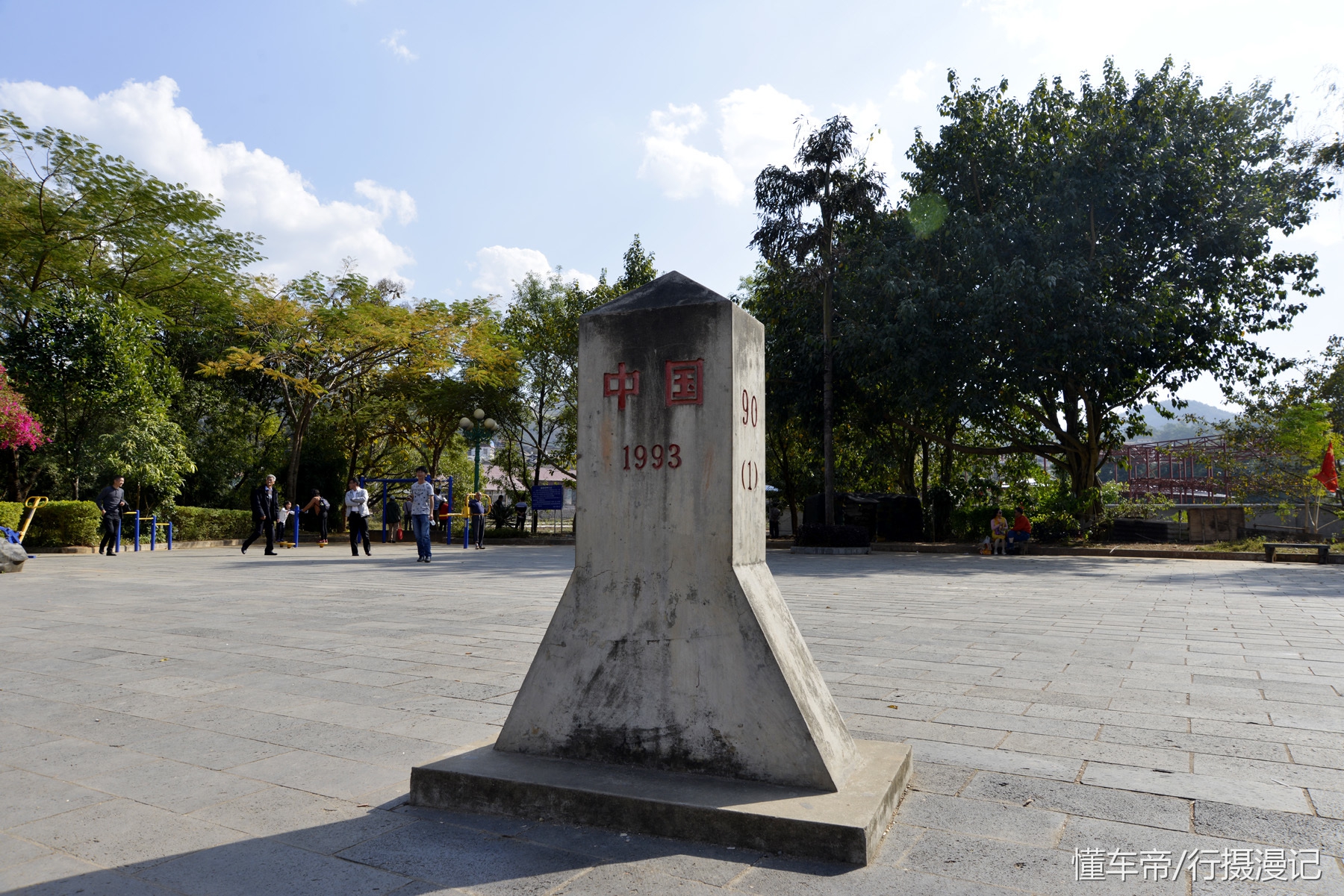 这个1993年所立的90(1)号界碑,位于一个不起眼的小公园,说它是公园其实都夸张了。就是我们通常在城市里所见到的社区公园,几个公用健身器材,一个供大家跳广场舞的小平台。但在广场中央,就竖立着这样一个界碑,再往后几十米,就是一条小河,这条小河就是一个国家与另一个国家的国境线。这个界碑的写着“中国”字样的一面面向中国,而另一面写着——缅甸。