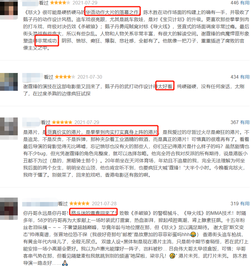 这从那些给好评的网友评论就能看出,他们中的大部分都提到了《怒火·重案》与《宝贝计划》、《杀破狼》、《导火线》等经典香港电影的相似之处。