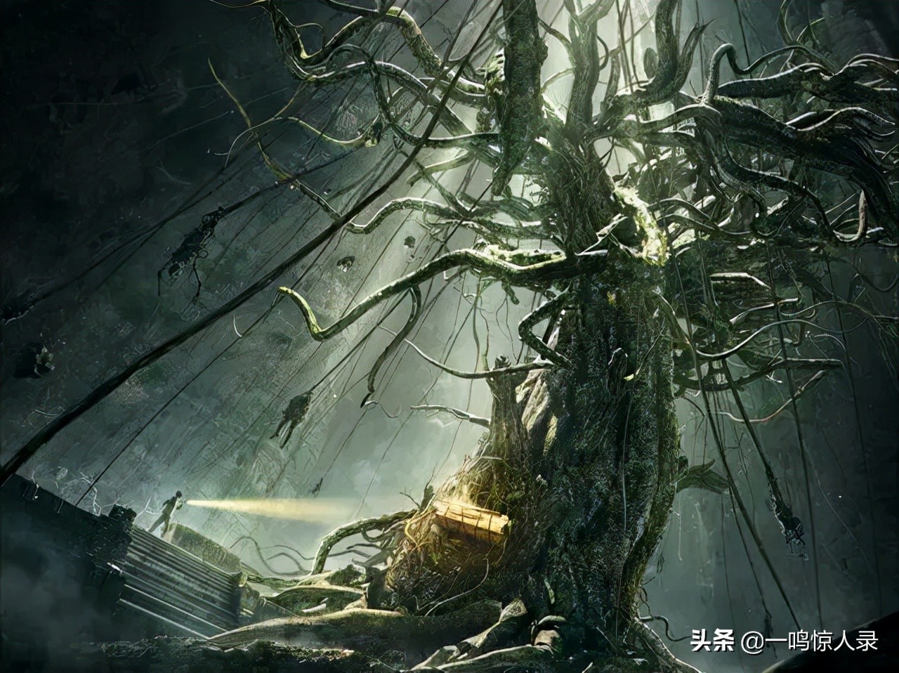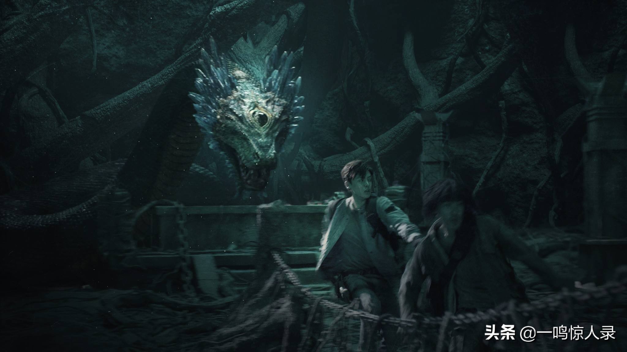 而在《盗墓笔记》中,九头蛇柏更像是一位引路者,它将黎簇和黑瞎子卷入地下后便消失不见。