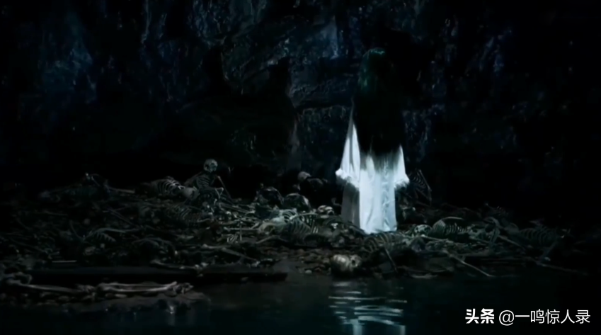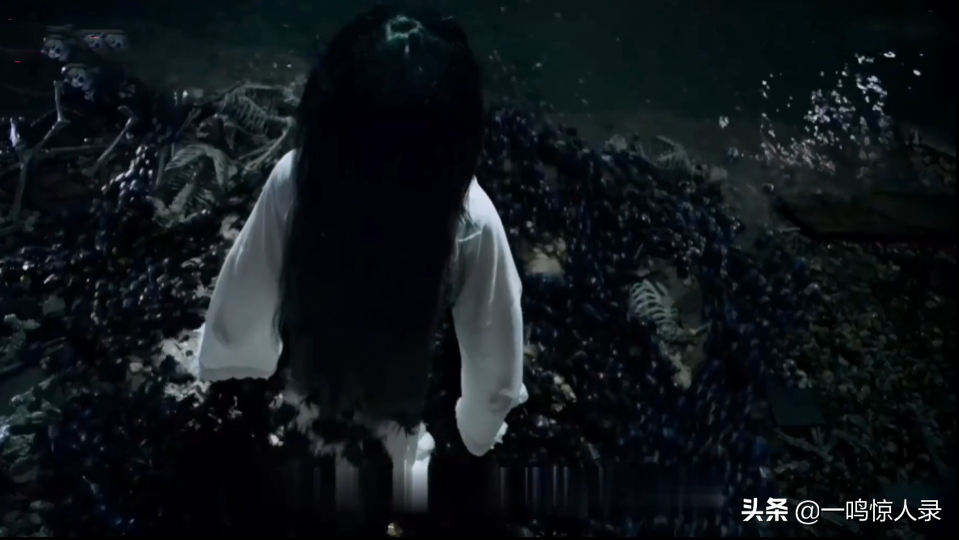 于是众人向那积尸地出发,突然一具白衣女鬼出现在岸边,垂手而立,整个面庞都被森然黑发掩盖,看不清楚其真实面目。