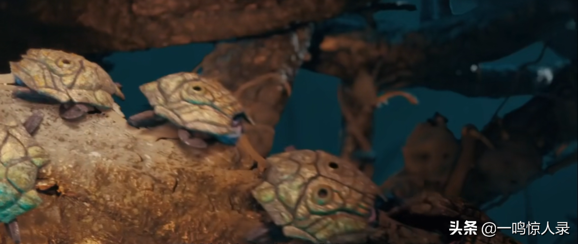 张起灵利用双指的特殊性,以迅雷不及掩耳之势迅速从水中抓了一只大型尸蟞,却发现这只尸蟞尾部还连接着一个铃铛。