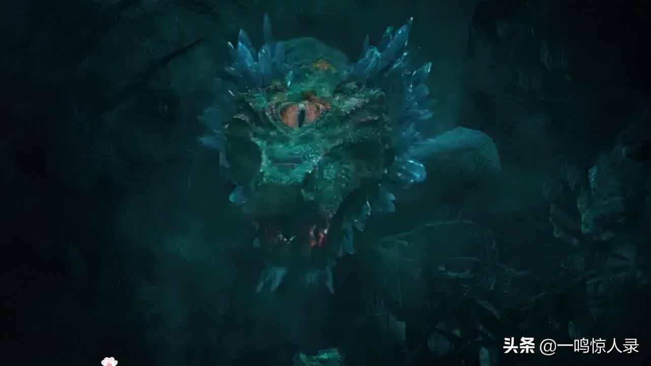 因为烛九阴在岩石缝隙中生存,它几乎没有正视的机会,所以原来的两只蛇眼就像比目鱼那般发生了退化。
