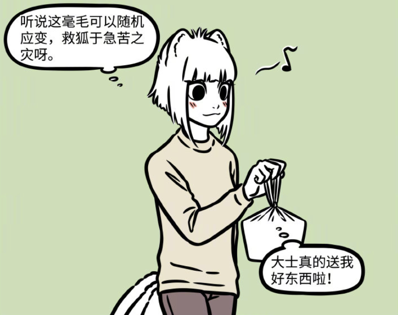 比如最近更新的《非人哉》漫画第780话就明确提到,九月妹子得到了大士赠送的宝贝:三根救命毫毛,是和猴哥孙悟空同款的那种,哇得了这种好东西不得要个什么寿与天齐财富堪比二马什么的?