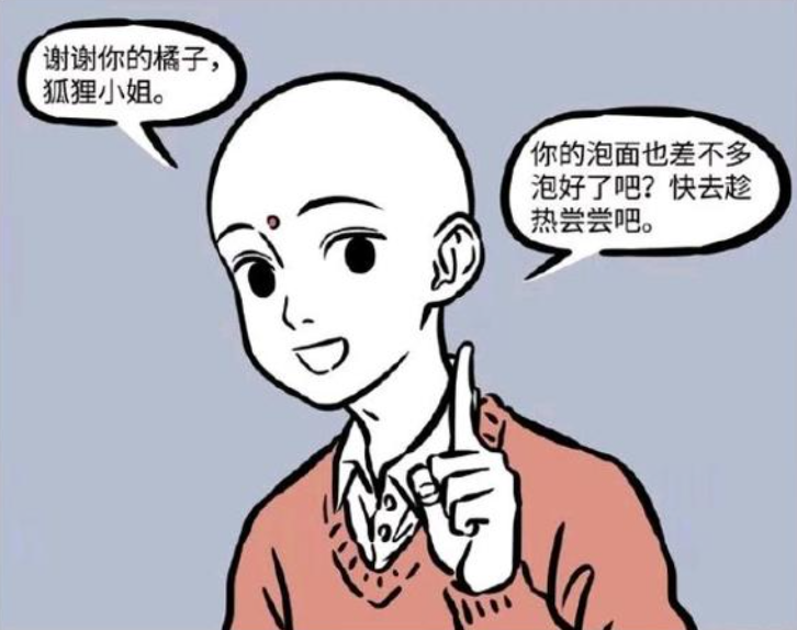 之前的漫画里,还有地藏菩萨来到他们公司玩耍的剧情,地藏菩萨他老人家可是最最喜欢乐于助人的了,而且基本上属于你只要是乖宝宝,那么基本上有求必应这种,地藏菩萨问九月有没有什么烦恼,这时候九月要是抱怨下自己穷啊没对象啥的,说不定又发财又找到帅男友了,结果这货抱怨了一通公司热水器坏了吃不了好泡面,结果那次故事里,九月妹子吃到了有生以来最好吃的一顿泡面,又一次错过了发达的机会。