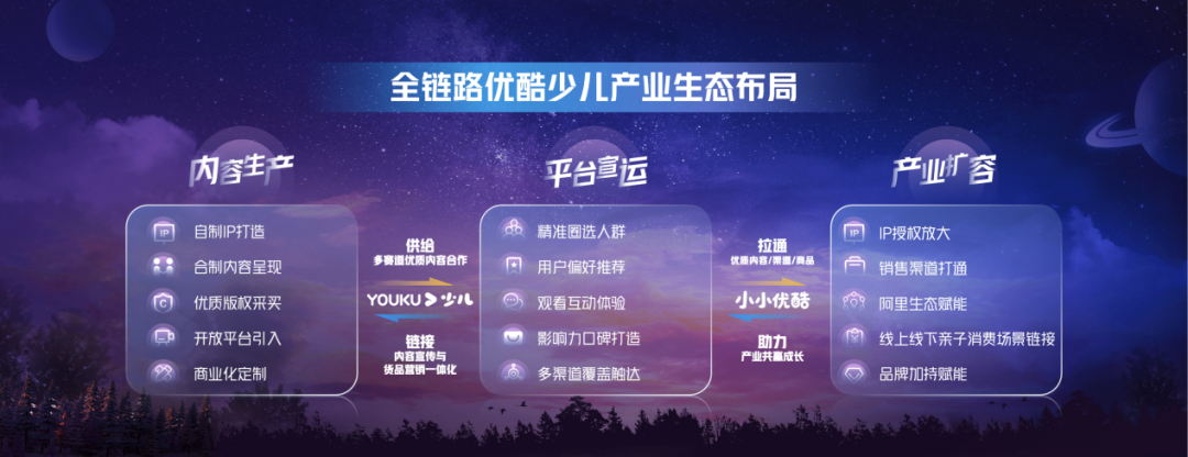 此次内容进阶的背后,优酷少儿同步宣布了“优酷少儿·小小优酷”双品牌升级,接下来将围绕内容生产、平台宣运、产业扩容三大维度,打造ip全链路运营,目标将平台从传统的内容聚合和播出平台,升级为一个少儿产业的生态平台。