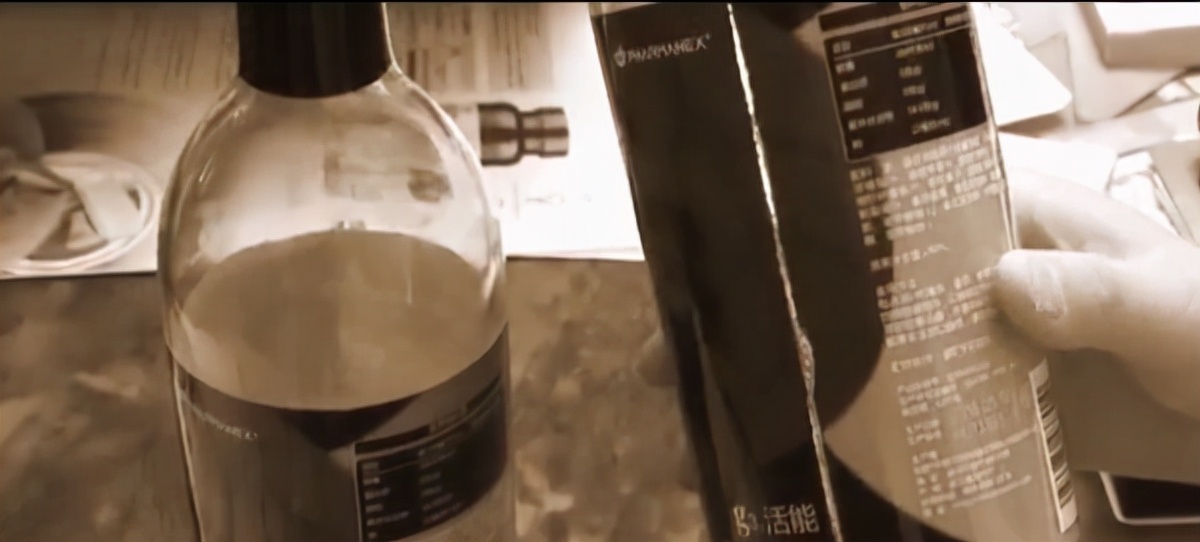 随即她拿出了自己包里面的一瓶貌似饮料的东西,她给自己的父母介绍说这个产品是我们公司最新推出的,