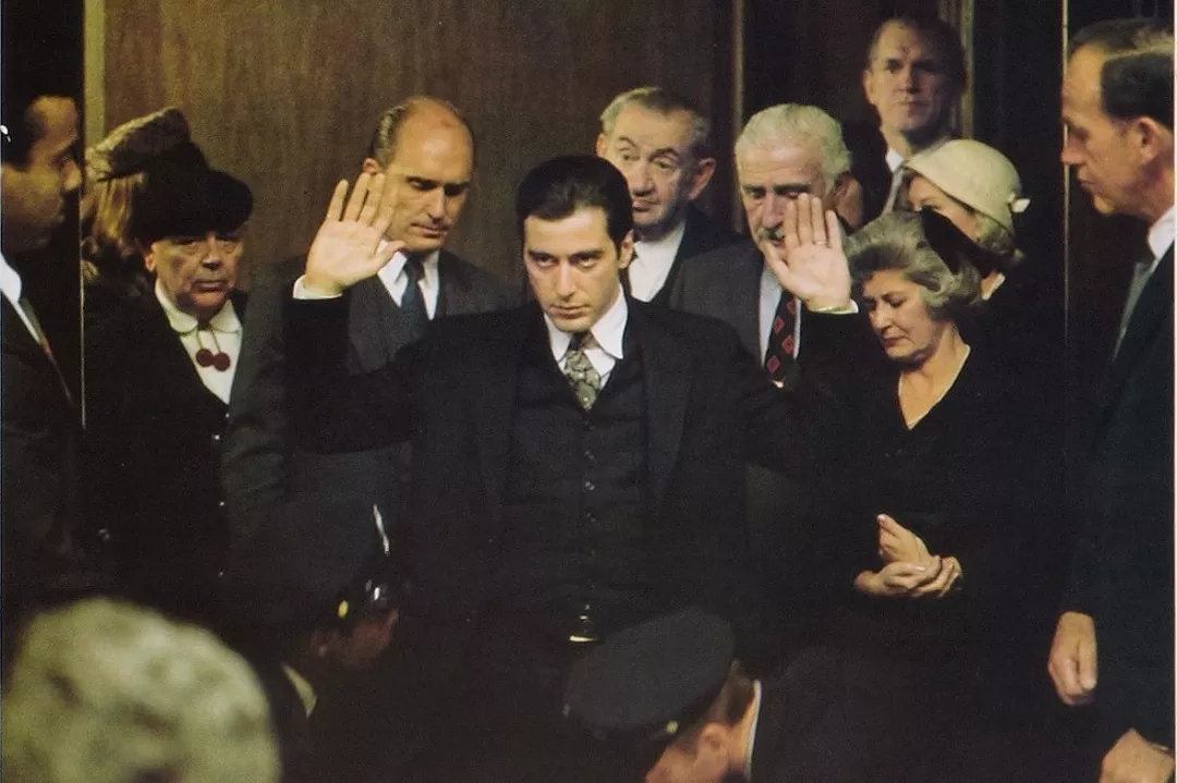 从柯达胶卷风格的婚礼,到迈克尔(阿尔·帕西诺饰)在阳光充沛的西西里岛上的爱情故事,再到ib彩色胶卷拍摄的青年维托·柯里昂(罗伯特·德尼罗饰)华丽的移民故事。
