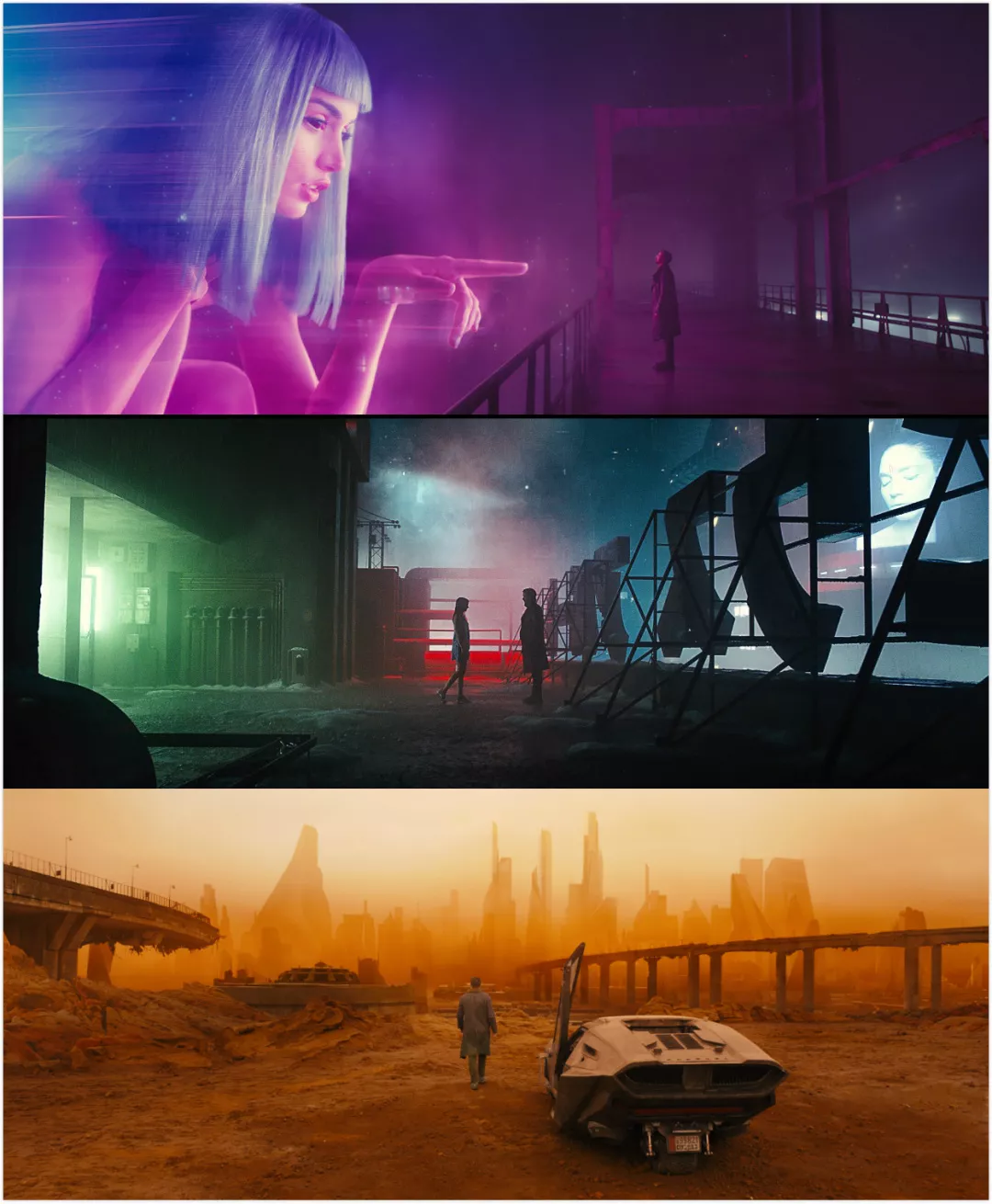 罗杰·迪金斯在电影《银翼杀手2049》中创造的视觉效果也同样令人震惊,其中最引人注目的就是他对色彩的运用:几乎每个镜头都有不同的调色板。