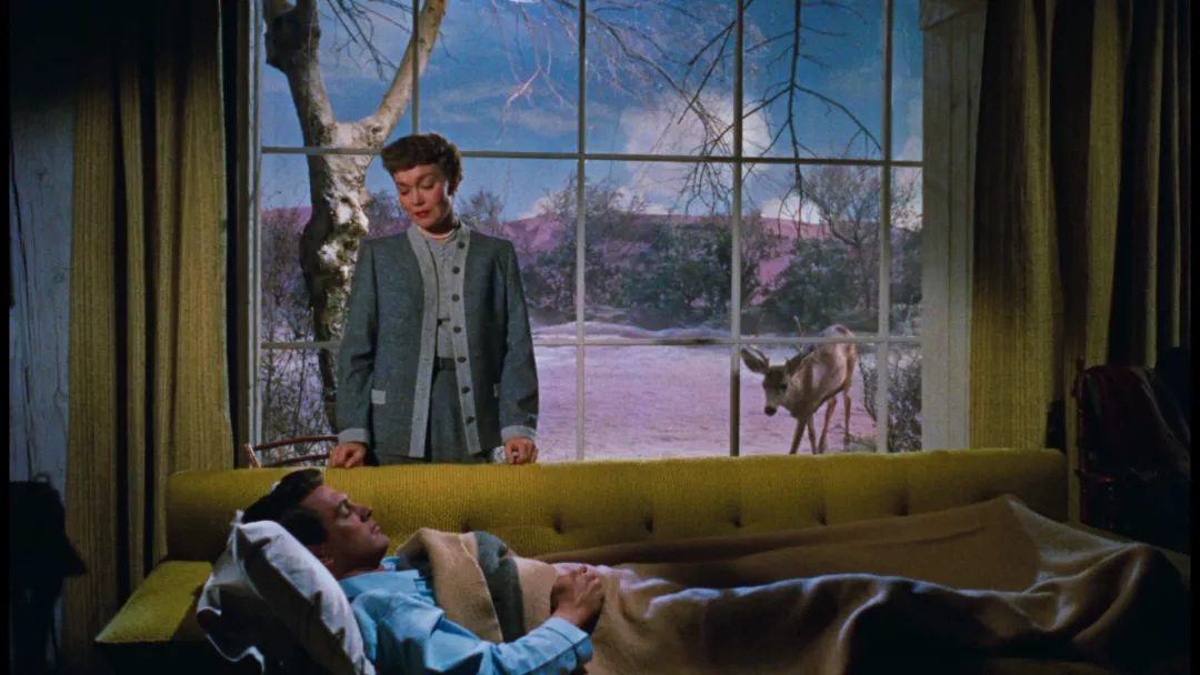在电影《深锁春光一院愁》中,道格拉斯·塞克和他伟大的摄影指导拉塞尔·麦蒂(合作成就了1950年代情景剧的类型范例)用彩色胶片如糖果般的鲜艳画面,为身处郊区的寡妇主角(简·怀曼饰)铸造了一座监狱。
