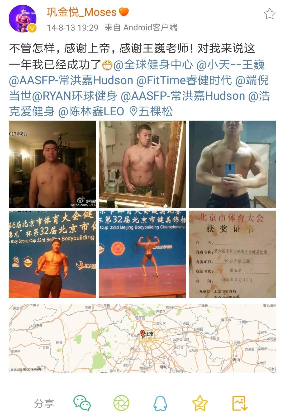 你一定想象不到,在拥有这副为人惊叹的好身材之前,巩金悦曾经是一个230斤体重连一个俯卧撑都做不了,被高血脂高血压困扰的自卑“肥仔”。在遇见改变了他命运的师傅之前,他甚至从来不曾想过,自己有一天竟然可以穿比基尼站在健美舞台上,自信而又从容的参加比赛。