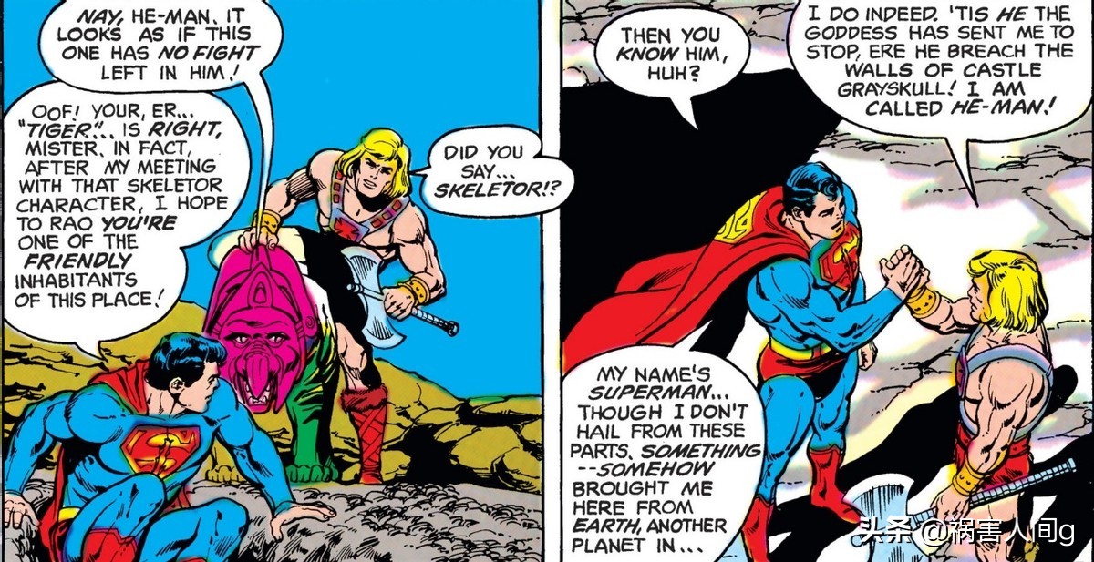 除了玩具配套的迷你漫画以外,dc公司在1982年漫画《dc漫画礼物》#47故事“从永恒到死亡”中通过将人气英雄超人穿越到希曼的永恒世界,与希曼相遇并帮助希曼击败了骷髅王,开始将希曼引入了dc多元宇宙。这是dc漫画正式出版的第一部希曼漫画。