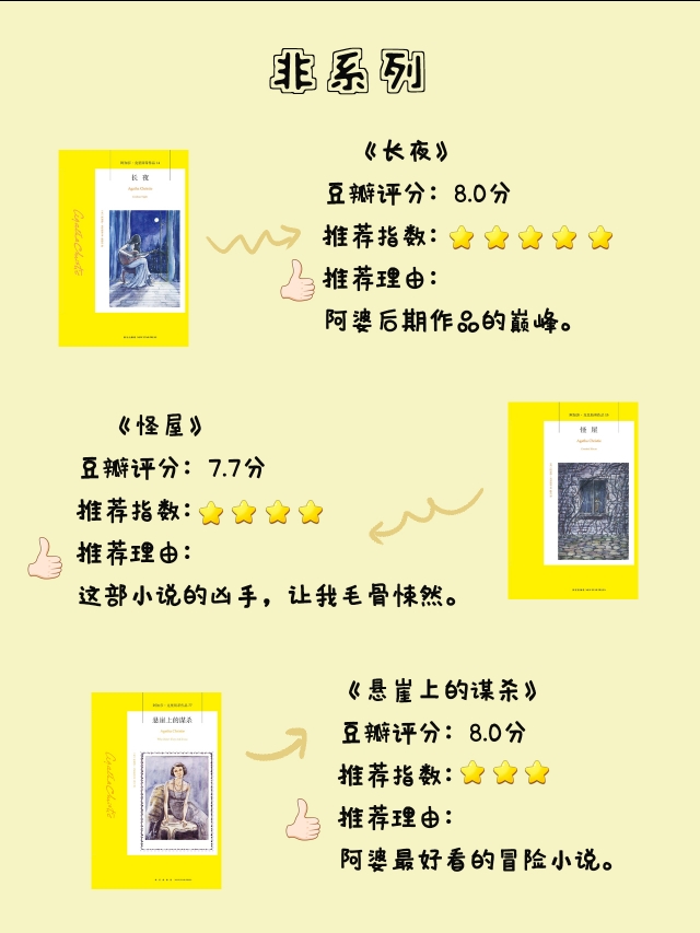 阿婆小说看到现在基本上也快看完了,除了《无人生还》《东方快车》,阿婆其实还有非常多好看,但是名气相对来说没那么大的小说。