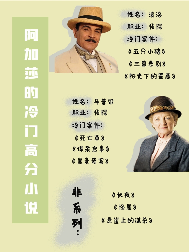 今天,整理了一些我比较喜欢的冷门小说分享给大家,波洛系列,马普尔系列,还有非系列,每个系列都有你不知道的遗珠。