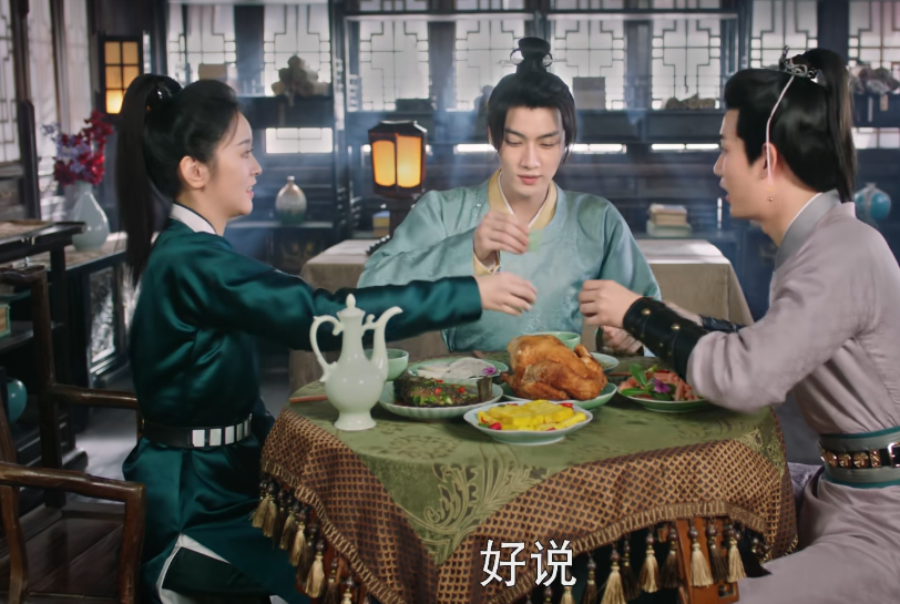 虽然元素多,但这部剧也确实做到了多而不乱,把每一条线都讲述得清清楚楚、明明白白,首先是男女主之间的这条爱情线,女主女扮男装在男主面前掉马,然后男主就一见钟情,没错,就是那种心动的感觉。