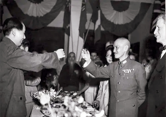 这是国共双方高级领导人的会面,自然不同寻常。蒋介石和毛泽东两人见面之后,都没有谈及政治,双方觥筹交错,互祝健康,共叙旧话,而蒋介石也在刻意营造一种愉快祥和的氛围,使得接下来的谈判有一个良好的开端。