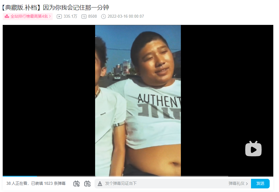 《因为你我会记住那一分钟》作为这种浪漫文化的开始,自然处于举报的风口浪尖之上。这部视频被无数次地举报、下架,而up主“请你喝好果汁”总是孜孜不倦地“补档”。在评论区,文豪们一次又一次地卷土重来,还有无数追随者刷着弹幕:“好果汁,你让我陷入疯狂。”如今,尽管举报的力度变低、甚至叔叔似乎有意推送相关视频,补档变得不再那么频繁,“补档”的标签却俨然成为了东百往事相关二创文化的一部分。