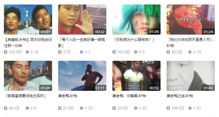 这段确实只有一分钟的视频把三种看似风马牛不相及的元素杂糅在一起:几位快手主播在几年前拍摄的视频段子的画面、橘子海乐队的一首名为《夏日漱石》的歌曲的前奏,以及王家卫电影的台词——但是当舒缓的音乐、老式煽情的台词和屏幕上装疯卖傻的胖子结合在一起的时候,你会发现这种杂糅开始散发出一种独特的魔力,让你不禁对其中的故事产生好奇;而一旦你顺着大数据的指引开始寻根问底,这场名为“东百往事”的画卷就开始在你面前逐渐展开了。