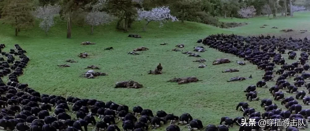 电影《最后的武士》中森胜元生(人物原型西乡隆盛)战死后,陆军新军士兵向森胜元生致敬