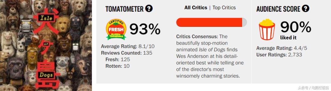 该片目前烂番茄新鲜度93%,爆米花指数90%。