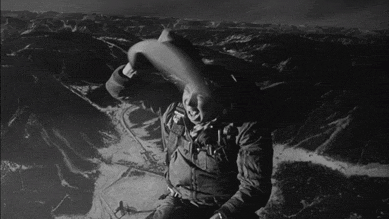 显然,这样的一个极具特色的美国飞行员形象,在现实中是几乎不会存在的。夸张行为让我想起了电影《奇爱博士》中那个戴着牛仔帽骑着核弹,冲下轰炸机的机长。