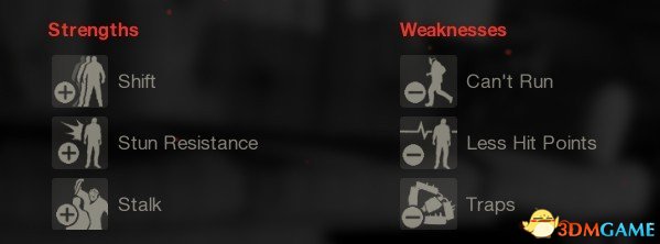 整体能力都很糟糕的jason,不能跑,突进慢,陷阱少,武器攻击力又低,除了处刑方式比较好看之外人家想不到有什么比较好的优点。