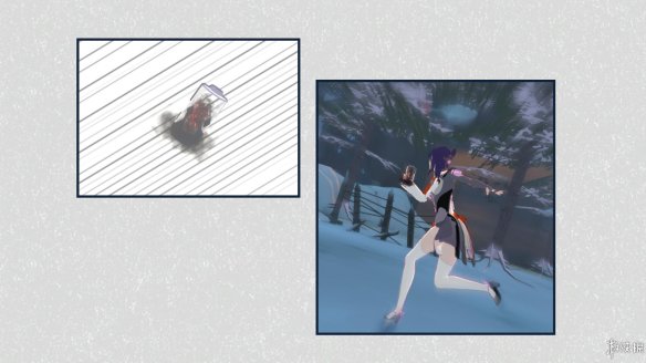 游戏采用了卡通渲染整体色彩明亮所以给玩家的第一印象还是非常不错的,人物虽然没有表情但是肢体动作还算比较流畅,但是随着游戏进程的推进诸多问题也慢慢暴露出来。《九霄》的过场采用了大量漫画分镜搭配场景动画,这么做确实符合游戏画风同时也是节省成本的好方法,但是看过漫画的玩家想必都能感觉到这些分镜做的非常敷衍,很多地方都直接采用左右对称的画面,这样的分镜表现除了让玩家切实感受到经费不足外几乎没有带来好的观感。