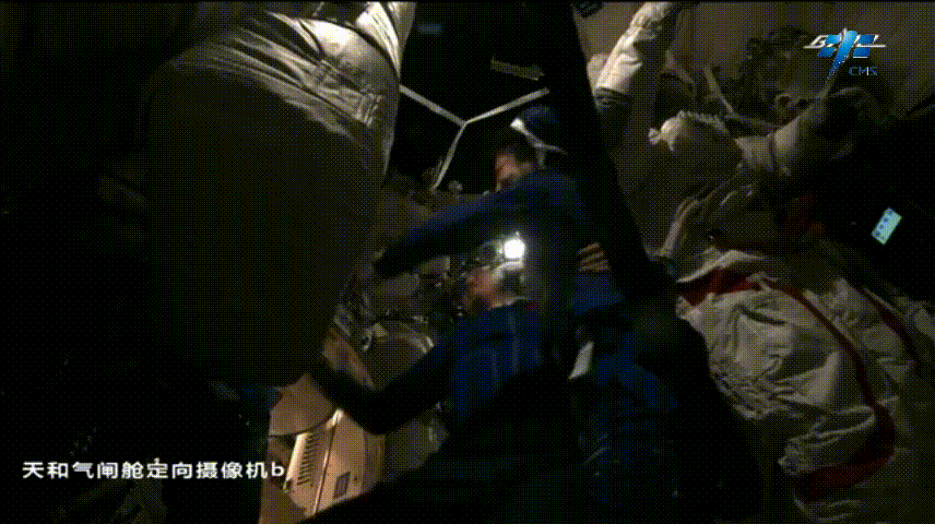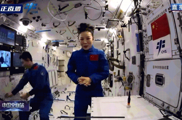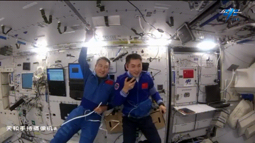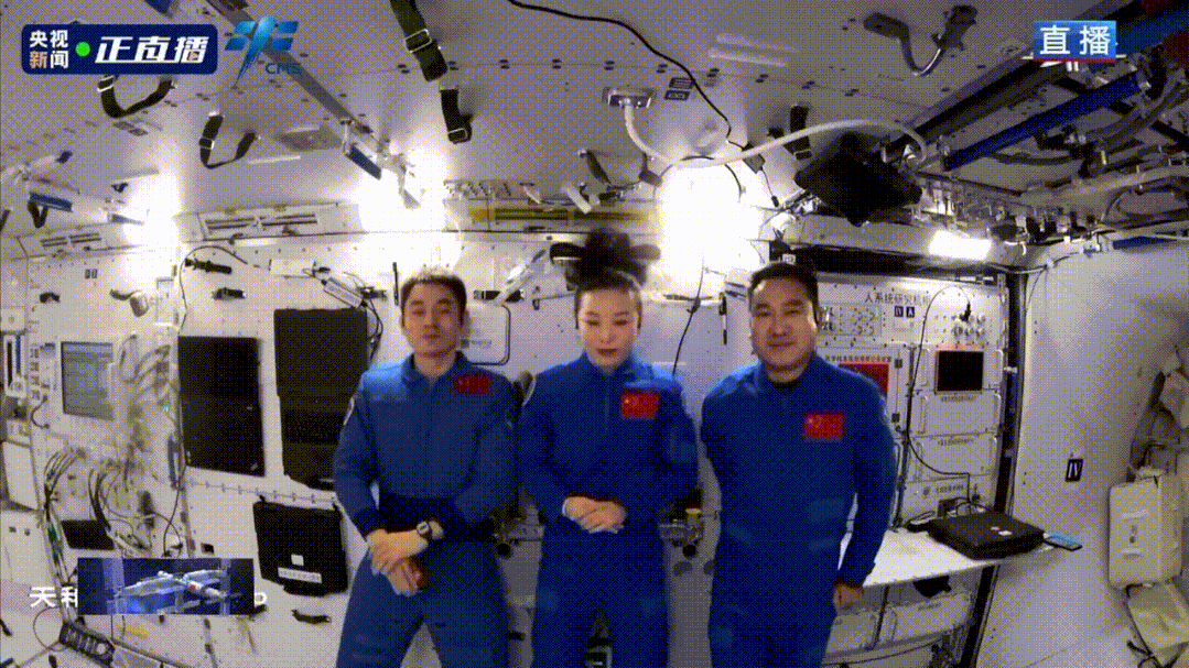 三人首次在核心舱内的镜头前
