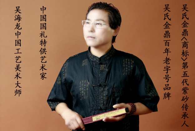 宜兴有天土,吴门出陶人。吴氏紫砂艺术馆品牌有:(吴氏金鼎)百年老字号。品牌商标有(吴门婷婷)(壶海龙)(吴海龙)(商标)第五代传承人吴海龙,继陶瓷、紫砂已成国艺。一盈把握,诸子尽在一掬之间,上兑庄老之露、下泡儒佛之泉。禅意不看红尘事,一捧紫砂释天机。