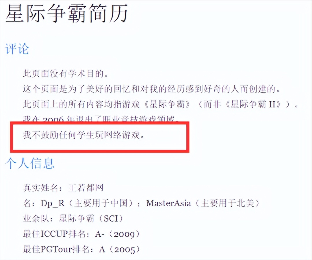 不过他出国后也一直没有忘记星际,偶尔也会自娱自乐打打《星际争霸2》,还打到美服前十的水平。在星际争霸二十周年中国玩家征文的时候,他还特地为征文活动写了个序,那句“我们把自己的青春放在这个古今罕有的游戏中,我们的命运因此相连,这是何其幸运”估计让不少星际老玩家们颇有感慨。