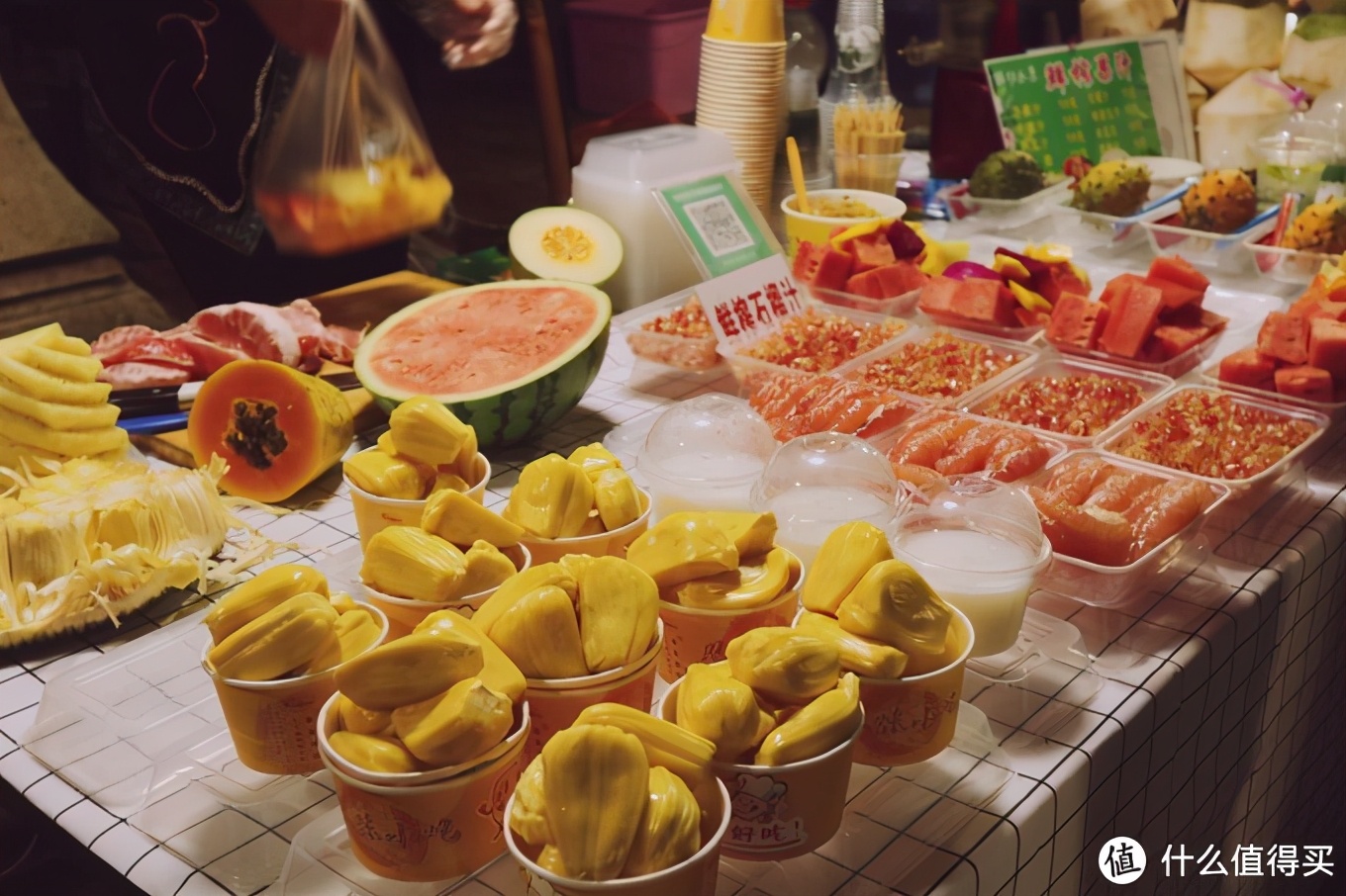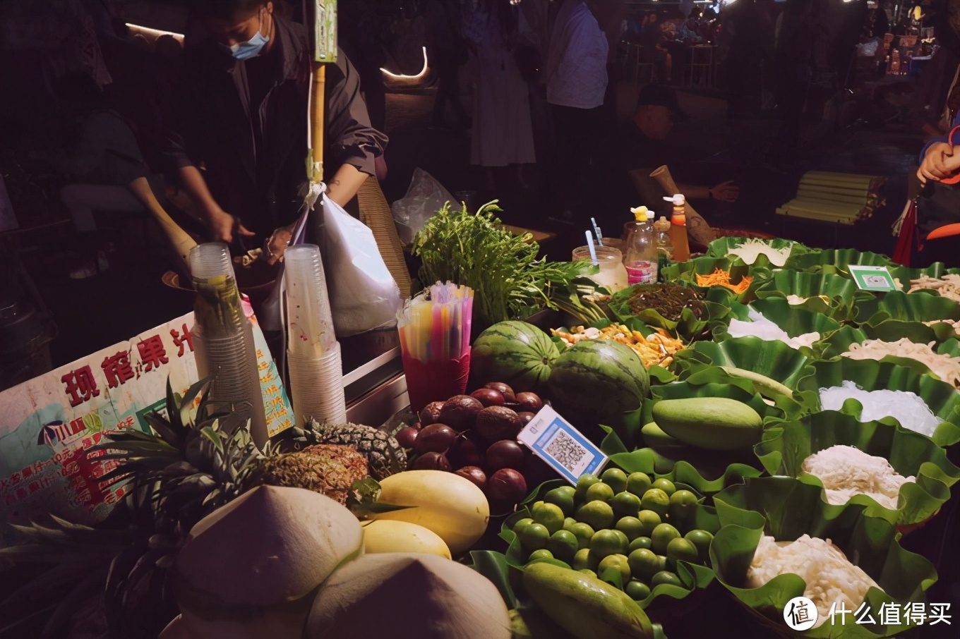 星光夜市有很多小吃摊子,春鸡脚、舂木瓜、包烧鸡脚筋、柠檬凉粉、青芒、蚝油辣椒芒果、各种各样的傣味烧烤、香茅草烤鱼、各种水果果汁等。不要吃晚饭了,直接来星光夜市就足够了。