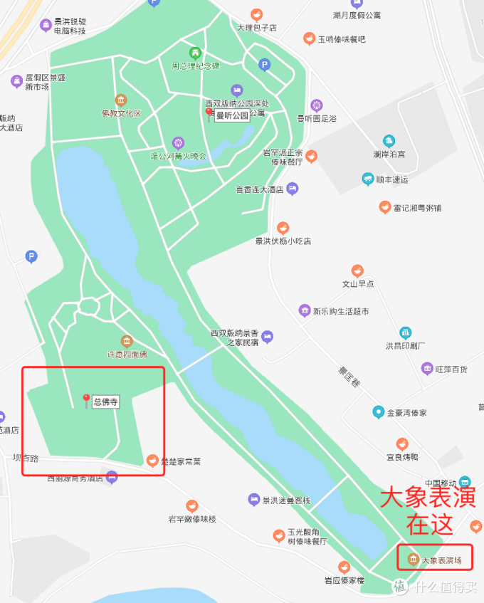 曼听公园和总佛寺是挨着的,买门票的话是曼听公园+总佛寺+大象表演+鹦鹉表演20元(半价),停车场免费,最晚5点入园。