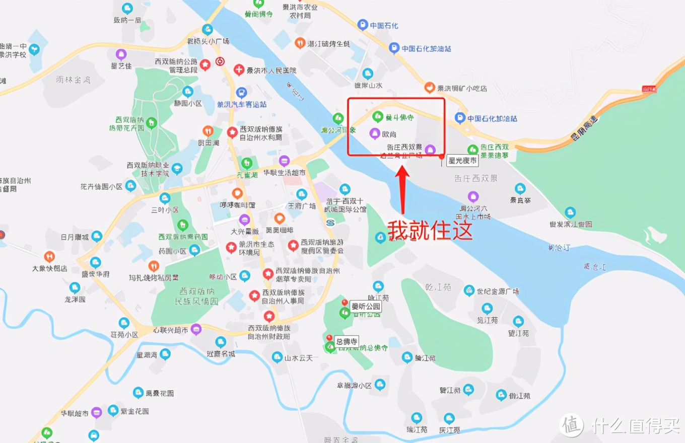 住宿主要分成市区和周边,市区主要集中在告庄西双景、泼水广场、融创。如果想玩版纳融创就住在旁边,像我一样的景点党,可以住在告庄西双景和泼水广场,机场都有大巴直达。我自己住在告庄西双景的汉庭,离星光夜市很近,双11飞猪囤的券,109元家庭房,30多平吧,还挺便宜的。