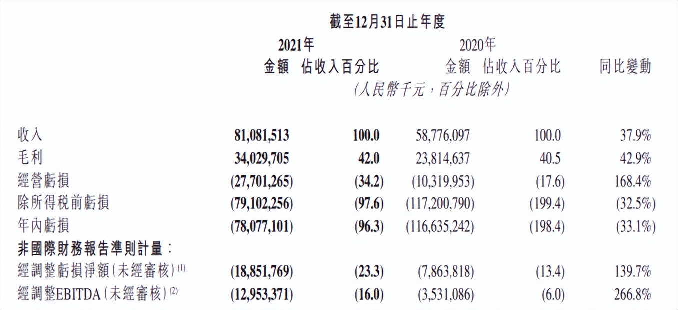 4)2021年快手收入810.82亿元,同比增长37.9%