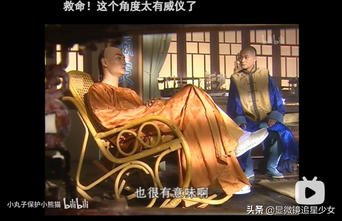 这张脸是不是乍看平平无奇?等你点开《皇太子秘史》你就知道渣苏的鼻祖是谁了,赵鸿飞是靠演技来让你知道什么叫皇家渣四,先说赵四爷的皇子之气是怎么来的,赵鸿飞身条纤长瘦而不弱,仪态极佳,行立坐卧皆有自己的定速,这种毫不松懈的规则感就是皇家典范的由来。这张剧截图,即便是摇椅,四爷和旁边的随侍的仪态天差地别,一眼看出谁为主谁为仆。