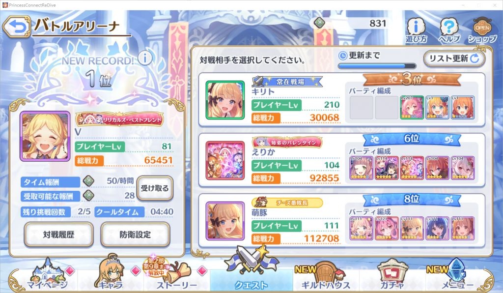 咱们先看一下公主连结的竞技场游戏模式的收益机制。