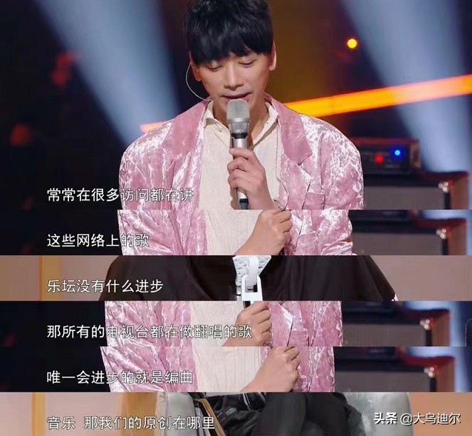 2、这个舞台上,坐在上边的人都是很有能力的音乐人,却都带头在改编,还跑别的节目去改编,大家都在做这样的事情,你还去怪别人翻唱、在做速成的事情,事实上,大家不都在做这样的事情吗?