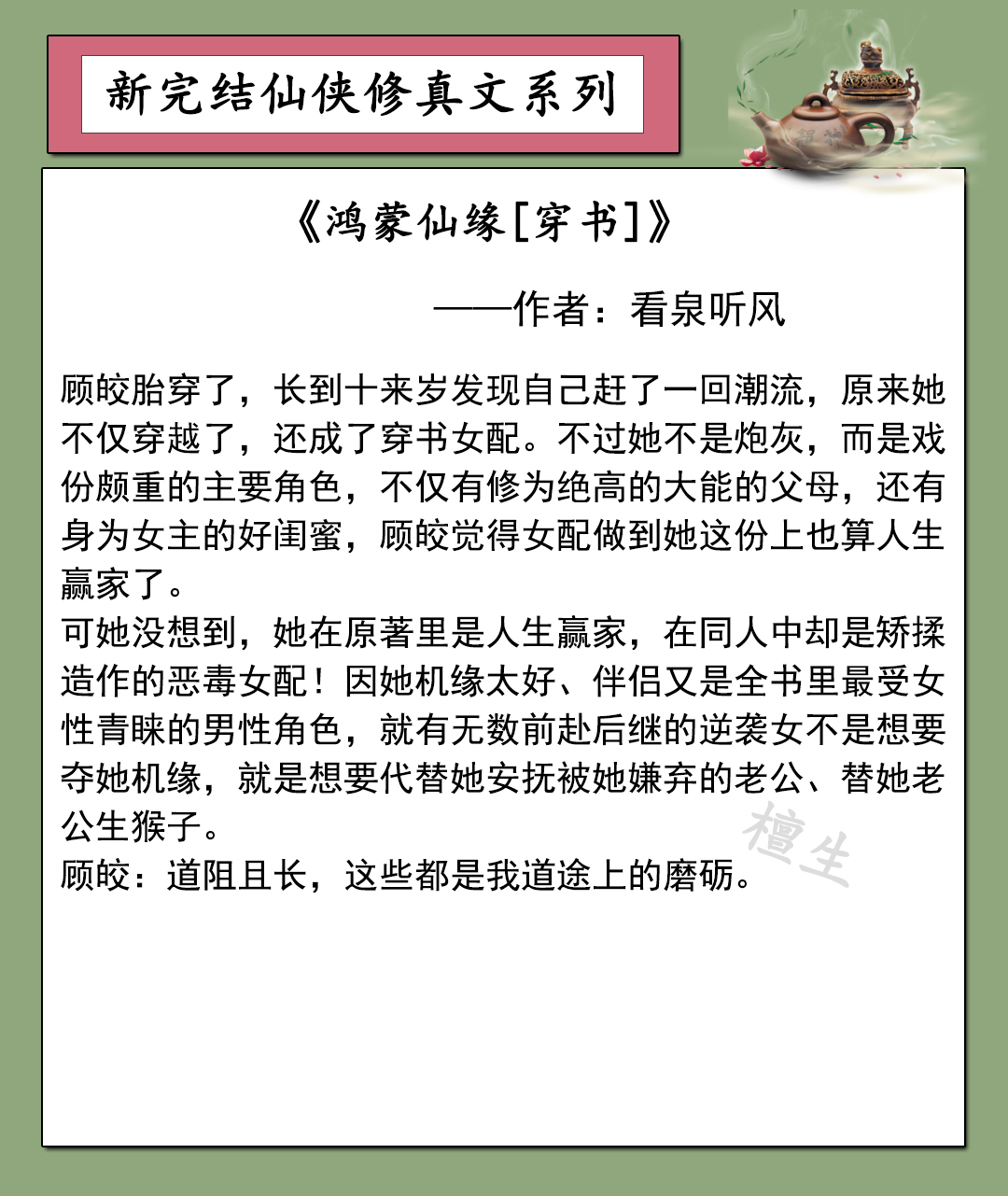 第一本:《鸿蒙仙缘[穿书》作者:看泉听风