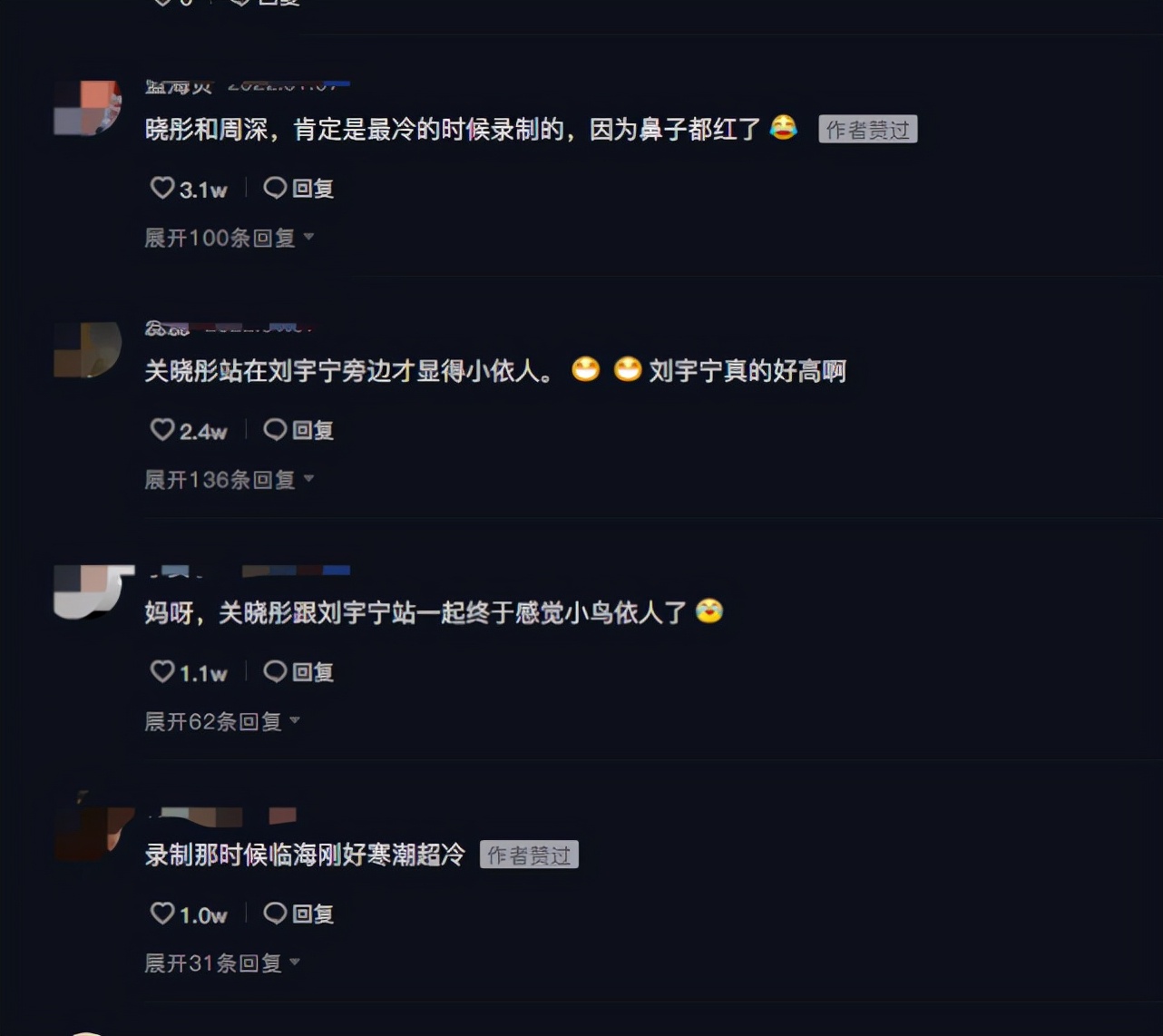 ??看到这一幕后,许多当地网友纷纷留言,称他们录制那几天正是寒潮,天气非常冷,即使穿着毛裤都瑟瑟发抖,何况是穿着短裙的关晓彤呢。